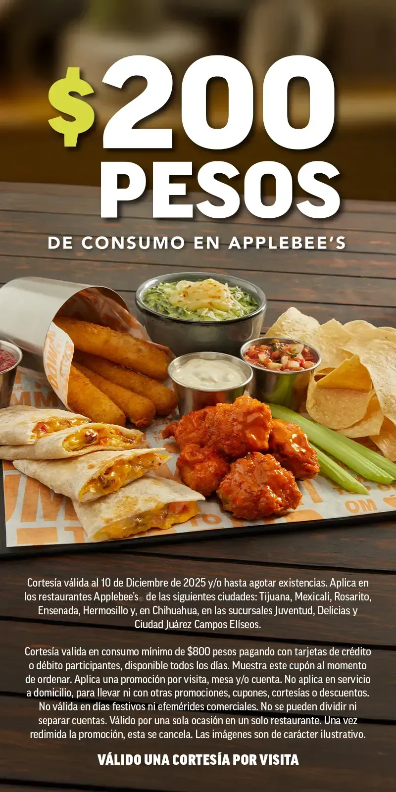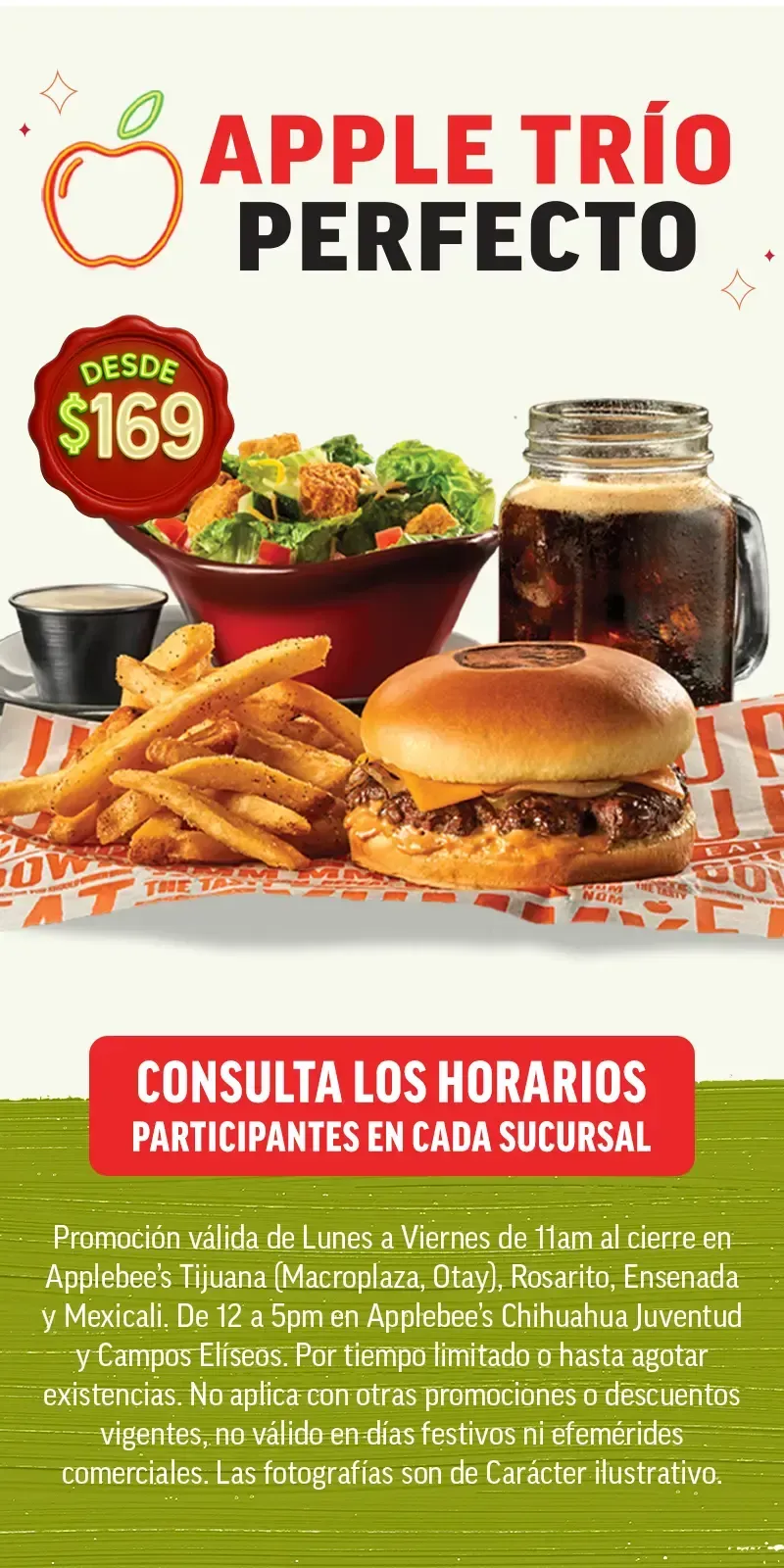 Consulta disponibilidad de días y horarios en tu Applebee's favorito.